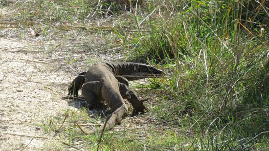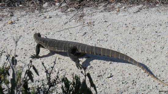 Zum Abschied hier zeigt sich eine schöne Echse am Strassenrand,