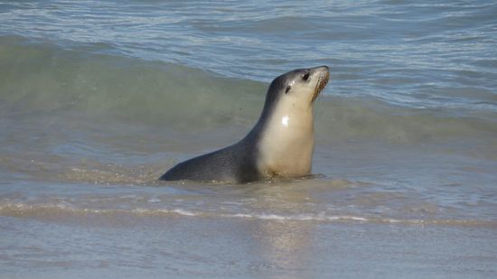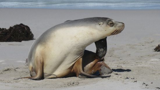 Im Seal Bay Conservation Park, Brutplatz für etwa 850 Australien Sea Lions, können wir dank unseres NP Passes an der geführten Tour runter bis zum Strand zu den Seelöwen teilnehmen, (sonst AUD 35)