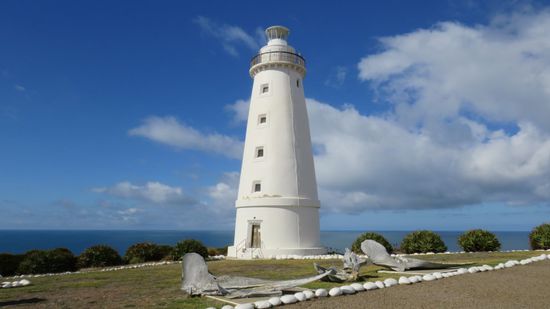 erreichen wir den Leuchtturm von Cape Borda, eine DER NP-Attraktionen hier, wir sehen (nach zahlreichem Roadkill) unsere ersten lebenden Wildtiere hier auf der Insel, ein Wallaby,
