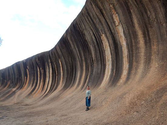 In Hyden, einige Fahrstunden von Perth entfernt, schauen wir uns den "Wave Rock" an. Dies ist ein Felsen, der aussieht wie eine versteinert Welle. Wasser hat die Welle so geformt.