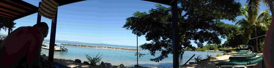 Mit einem freundlichen „bula“ - was so viel wie hallo heißt - werden wir im Hotel empfangen. Die Rezeptionistin begrüßt uns gleich mit unseren Namen, da wir die letzten noch zu erwarteten Gäste für heute sind. Schnell alle Formalitäten erledigen, das Zimmer beziehen und im Licht von Fackeln finden wir den Weg zum Strandrestaurant. Dort genießen wir das Abendessen, während die Meereswellen ganz zart an den Steg klatschen und einheimische Musiker im Hintergrund spielen.