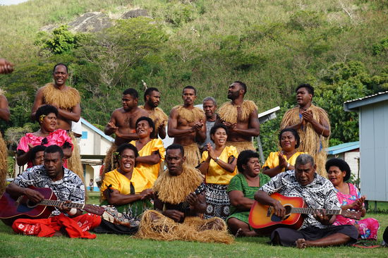 Wir steuern einen Platz in mitten des Dorfes an wo wir gebeten werden uns zu setzen. Hier wird für uns eine Willkommens zeremonie durchgeführt, in der uns Kava angeboten wird. Kava ist ein Landestypisches Getränk welches aus einer Wurzel gewonnen wird. Diese Wurzel wird klein gehackt und getrocknet. Das dabei entstandene Pulver kommt in einen Stoffsack und dieser wird in Wasser ausgewaschen. Die dabei entstandene braune Flüssigkeit nennt sich dann Kava. Es hat eine Betäubende Wirkung und wenn man viel davon trinkt kann es ähnliche Auswirkungen wie zu viel Alkohol haben.