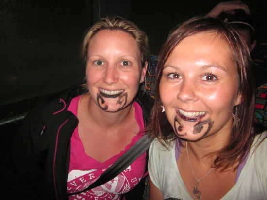 Also haben wir uns im Bus schonmal darauf vorbereitet und uns dementsprechend geschminkt