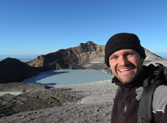 Heute ist „Papa-alleine-Tag“, als Ausflugsziel habe ich mir den Kratersee des höchsten Berges der Nordinsel ausgesucht, des Vulkans Mount Ruapehu. Er liegt auf ca. 2600m und es führt kein markierter Weg hinauf. Man soll sich einen Guide nehmen oder muss sich seinen Weg allein suchen. Natürlich will ich es ohne Guide versuchen. Zum Sonnenaufgang (ca. 07.30 Uhr) will ich bereits so weit oben wie möglich sein. Ich würde so den Touristengruppen mit Guide entkommen und zeitig genug zurück sein, sodass die restliche Familie nur den Vormittag allein verbringen muss. Zum Glück ist klarer Sternenhimmel, denn bei dichten Wolken oder Nebel hat man keine Chance, einen geeigneten Pfad zu finden. Weder hinauf, noch herunter. Um 05:15 klingelt der Wecker, 06:00 werde ich von Anja mit unserem Bus am letzten Parkplatz neben dem Skilift abgesetzt. Die Kinder schauen nur unter der Bettdecke hervor. Kein anderes Auto ist zu sehen und es weht ein eisiger Wind. Wir verabreden die Abholung für 14:00 Uhr. Los geht’s. Nachdem ich die ersten Höhenmeter hinter mir habe, erkenne ich deutlich, warum hier der Drehort für Mordor war. Die Silhouetten der schroffen Vorgipfel des Vulkans könnten nicht besser dazu passen. Der steile und anstrengende Aufstieg dauert knapp 2,5h. Immer wieder muss ich etwas zurückklettern und meine Route korrigieren. Dann stehe ich plötzlich auf dem schmalen Kraterrand. Was für ein Gefühl, einfach irre. Keine Menschenseele ist zu sehen. Ich bin allein auf dem Vulkan. Die wärmende Sonne kam soeben erst über die Gipfel im Osten. Vor Freude schreie ich kurz in den riesigen Krater vor mir und es hallt zurück. Etwa 1,5h lang nehme ich mir Zeit und wandere in den beiden Kratern, neben dem schwefelhaltigen Kratersee und auf dem Gletschereis herum. Und ich frühstücke endlich, bisher gabs nur Nussriegel. Dann kommen die ersten Wolken aus dem Tal herauf und ich steige zügig wieder ab. Jetzt sind die Fußspuren des „normalen“ Weges gut sichtbar. Immer noch bin ich allein. Fast am Parkplatz angekommen, nehme ich den Abstecher zur eindrucksvollen „Meads Wall“. Hier wurden viele Szenen mit den Orks gedreht und ich will kurz sehen, ob es auch für die Kinder hier schön ist. Am Nachmittag sind wir alle 4 wieder hier. Nachdem Anja mit den Kindern vier Stunden vormittags durch die Wälder, Ebenen und zu Wasserfällen wanderte, waren alle etwas müde. Doch diese Wand begeisterte uns und es dauerte nur Minuten, bis alle irgendwo herumklettern wollten oder staunend in den Abgrund schauten. Hier war Mordor - die „Böse Welt“ – zur „guten Welt“ sollte es als nächstes gehen…