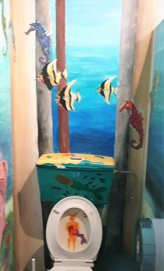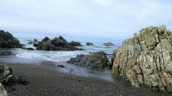 Übernachtung dann in einem sehr schrägen Hostel in Picton. Jeder Zentimeter ist hier bemalt. Die Besitzerin gibt mir den Tip, auf der Weiterfahrt am Ward Strand zu halten.