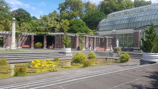 Den nächsten Tag in Auckland hatte ich hauptsächlich zum "Akklimatisieren" ohne allzu ambitionierte Unternehmungen vorgesehen. Der "Coast to Coast Walkway" in Auckland führt von der Westküste an die Ostküste, die Nordinsel ist hier nur etwa 16 km "schmal". Mit dem Bus fahre ich zunächst bis zur Parkanlage "One Tree Hill Domain". Von da aus geht es weiter über den Melville Park und das Gelände der University of Auckland zum Mount Eden Park. In der Nachbarschaft befindet sich die Mount Eden Road mit vielen kleinen Läden und Gaststätten, hier kehre ich zum Lunch ein. Der Weg führt nun zur Auckland Domain, da sind die "Domain Wintergardens" einen Besuch wert mit Gewächshäusern für Pflanzen tropischer und gemäßigter Zonen.