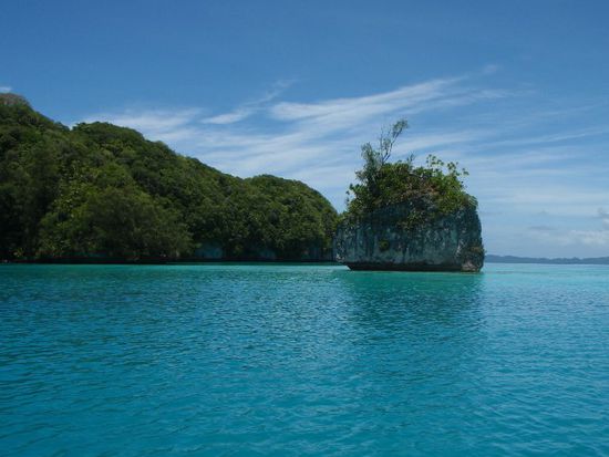 3 Tage auf Peleliu Island standen nun am Plan, die Standard Fähre hatte gerade einen Motorschaden, aber wir hatten Glück und fanden ein anderes Boot mit dem wir mitfahren konnten. Die Bootsfahrt war ziemlich cool, da wir wieder durch die Rock-Islands fuhren.