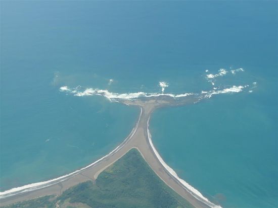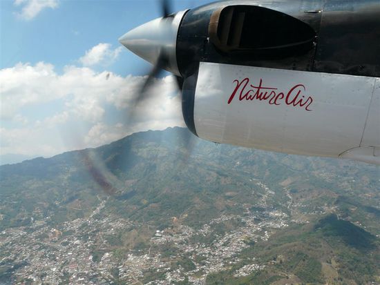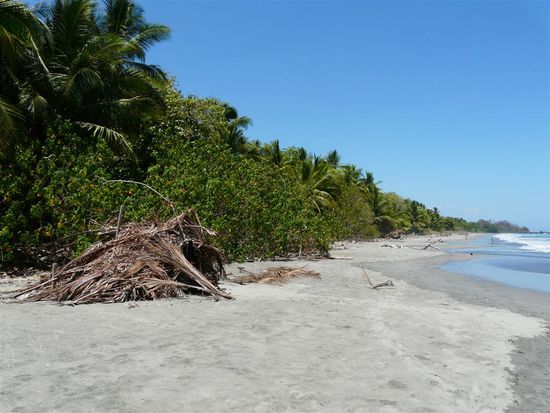 Am drauffolgenden Morgen sind wir direkt mit Nature Air nach Drake geflogen. Der Flug in der zweimotorigen Maschine Twin-Otter war toll. Wir genossen die Aussicht und landeten 50 Minuten spaeter in Drake. Mit dem Bus haetten wir fuer die gleiche Strecke neun Stunden benoetigt. Gewohnt haben wir in der Rio Drake Lodge direkt an der Start- bzw. Landepiste von Drake. Diese ist sehr kurz und erst seit zwei Jahren geteert. Abends grasen sogar Kuehe auf der Piste. Der Ort an sich ist recht klein und besteht hauptsaechlich aus einer kleinen Haueseransammlung, einer Bar, zwei Pulperias (Tante-Emma-Laeden). Das naechste Hotel ist 30 Minuten zu Fuss entfernt. Edu, der Boss unserer Unterkunft, hat sich sehr um uns bemueht. Essen nach Wunsch und die tolle Atmosphaere haben uns gut gefallen. Es gab keinen Strom und die Zimmer waren mit dem Noetigsten ausgestattet. In der ersten Nacht hatten wir gleich Besuch. Joerg musste zwei grosse Spinnen toeten, und morgens fanden wir sogar einen Skorpion in unserem Moskitonetz. Eine der Spinnen war, wie sich spaeter herausstellte, eine der giftigsten Costa Ricas. Unsere Tage haben wir am menschenleeren Strand, auf kleinen Wanderungen und schlafend und lesend in Haengematten verbracht.