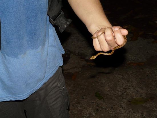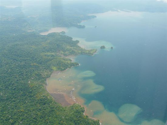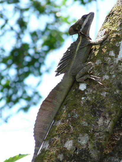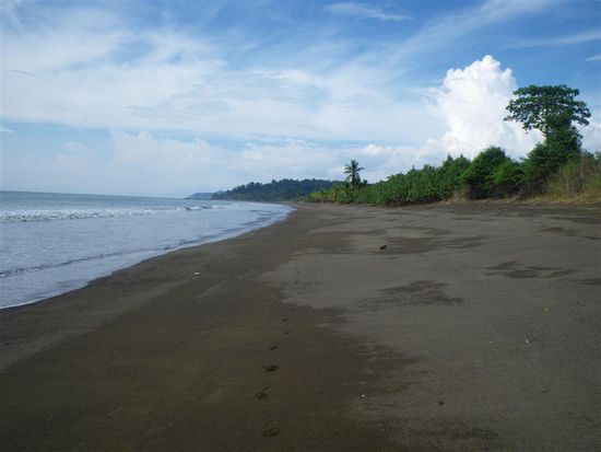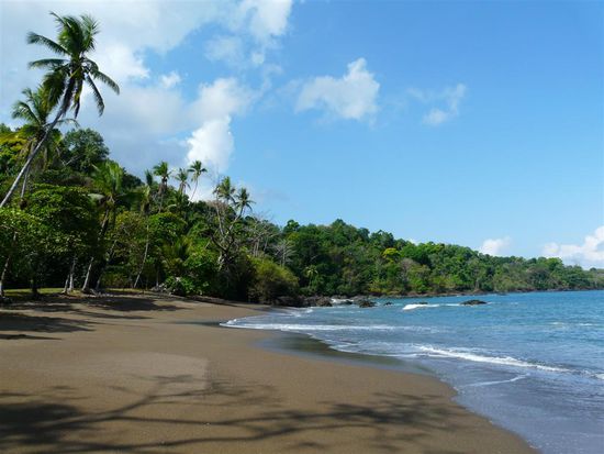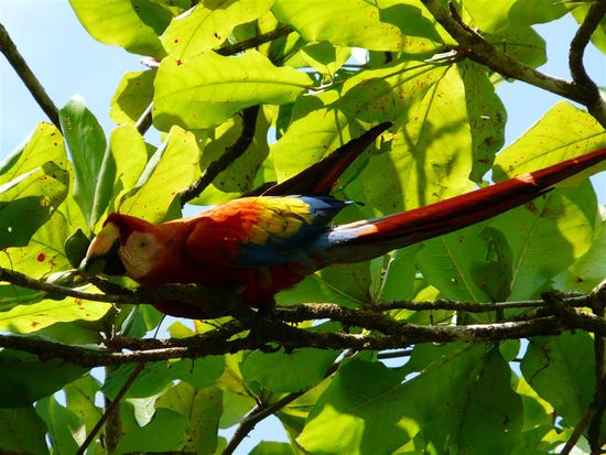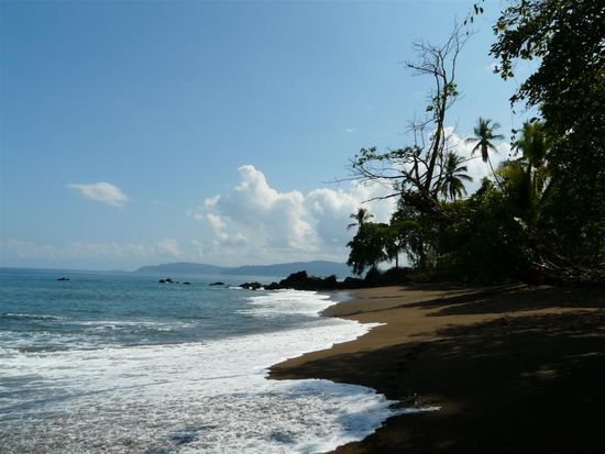 Am letzten Tag besuchten wir den Corcovado Nationalpark. Der Park liegt (wie Drake auch) im westlichen Teil der Halbinsel Osa im Südwesten von Costa Rica. Er ist einer der besterhaltensten Regenwälder Costa Ricas. Er ist etwa 41,788 Hektar groß. Das hauptsächlich von dichtem Tieflandregenwald, prämontanem Bergregenwald und Mangroven bewachsene Gebiet beherbergt eine überwältigende Anzahl von Tier- und Pflanzenarten, die an kaum einem anderen Ort der Welt bewundert werden kann. Mehr als 500 verschiedene Baumarten, etwa 140 Säugetier- und 370 Vogelarten, weiterhin über 150 Orchideenarten, 120 Reptilien- und Amphibien sowie mehr als 6000 Insektenarten leben dort. Wir sind auf dem Strandweg durch den Park gewandert. Es war sehr heiss und schwuel, aber der Weg war wunderschoen. Unterwegs konnten wir die ueppige Vegetation bewundern, haben Aras und Affenherden gesehen und zwischendurch an traumhaften und einsamen Straenden Pausen eingelegt. Am Abend waren wir mit Tracie der "Insektenfrau" auf einer Nachtwanderung. Sie ist Biologin und hat alle zehn Meter auf andere Tiere in der Dunkelheit hingewiesen und uns mit vielen Informationen dazu versorgt. Wir haben giftige Froesche, Schlangen und Spinnen gesehen. Bei dieser Tour erfuhren wir dann auch, welche Spinne wir ein paar Tage vorher eliminiert hatten.