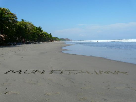 Zurueck haben wir uns wieder fuer Nature Air entschieden. Aufgrund der bevorstehenden Osterfeiertage wollten wir schnellstmoeglich nach Montezuma. Am Gruendonnerstag und Karfreitag gibt es keine Busse und vorher und nachher sind diese ueberfuellt. Mit dem Flugzeug flogen wir diesmal etwas wackliger nach San Jose. Dort sind wir direkt in den Bus nach Puntarenas gestiegen, mit der Faehre nach Paquera und abschliessend per Bus nach Montezuma gefahren. Fuer viele klingt das sicherlich sehr anstrengend. Fuer uns ist das mittlerweile Alltag. Unglaublich an was man sich alles gewoehnen kann. Wir schlafen und ruhen uns auf solchen Trips eher aus, als das es uns nervt. Montezuma ist ein ehemaliges Hippiedorf, dessen besonderen Charme man auch heute noch spuert. Die Straende sind traumhaft (wenn man bereit ist 30 Minuten Fussweg in Kauf zu nehmen). Es gibt keine grossen Hotels, keinen Geldautomaten und auch Fastfoodrestaurants sucht man vergeblich.