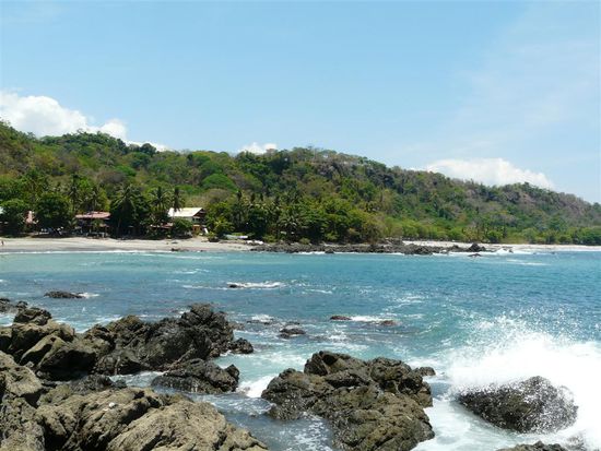 In Montezuma suchten wir uns erstmal ein Zimmer fuer eine Nacht, da wir im Dunkeln ankamen und Hunger hatten. Fuer 30 $ bekamen wir ein Drecksloch (Pension Jenny) ohne fliessend Wasser, dafuer aber mit reichlich Schimmel an den Waenden. Danke, Lonely Planet fuer diese tolle Empfehlung. Nach dem Essen haben wir uns direkt ein anderes Hotel gesucht. Im Hotel Aurora sind wir dann acht Naechte geblieben. Es gehoert einer Deutschen und war einfach nur klasse. Wir waren froh, endlich mal wieder ein Heim zu haben und im Supermarkt zu wissen, wo man was findet. Reisen kann auf die Dauer echt anstrengend werden und wir brauchten eine Pause. Nach vier Monaten unterwegs waren wir nicht mehr fuer neue Eindruecke aufnahmefaehig. Gemacht haben wir eigentlich nichts Besonderes. Wir haben uns ausgeruht, ausgeschlafen und viele liebe Menschen kennengelernt. Besonders genossen haben wir unsere Tage im "Haus am See" und die Naechte bei Mondschein am wilden Pazifik. Ostern wurde der Ort etwas voller, da hier auch die Einheimischen Urlaub machten. Donnerstags und Freitags vor Ostern wird kein Alkohol verkauft. Im Supermarkt waren die betreffenden Regale abgeklebt. Wein ist gemaess costaricanischem Gesetz ueberigens kein Alkohol. Den bekam man dann im Restaurant und Supermarkt. Komische Regel!