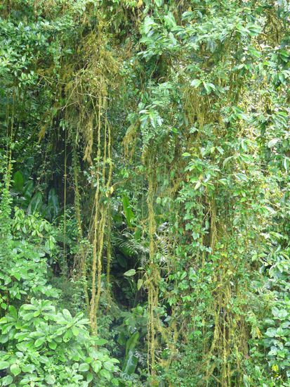Mit frisch aufgeladenen Akkus waren wir bereit weiterzureisen. Der erste Reisetag nach der Pause hat uns trotzdem Nerven gekostet. Der erste Bus kam nicht, der zweite kostet das Doppelte, ein Taxifahrer hat uns geprellt und es sind noch viele Kleinigkeiten schief gegangen. Unter anderem hat ein Kuli Katjas Zahnbuerste ganz toll eingefaerbt. Den Mut haben wir dabei nicht verloren und sind abends in Monteverde angekommen. Wir konnten Costa Rica nicht verlassen, ohne wenigstens die Berge und den Nebelwald gesehen zu haben. Gewohnt haben wir in Tinas Casitas. Leider hat die deutsche Besitzerin das Hostel verkauft und es sieht ganz danach aus, als sei dieser Platz in Zukunft nicht mehr zu empfehlen. Alles ist sehr abgewohnt und es besteht Renovierungsstau. Fuer unsere Zwecke und fuer 12 $ die Nacht war es vollkommen in Ordnung.