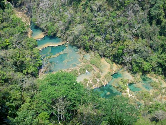 Semuc Champey ist dafür wirklich beeindruckend. Vor allem der Blick vom Aussichtspunkt ist jeden Tropfen Schweiß der am Weg dorthin vergossen wurde wert: