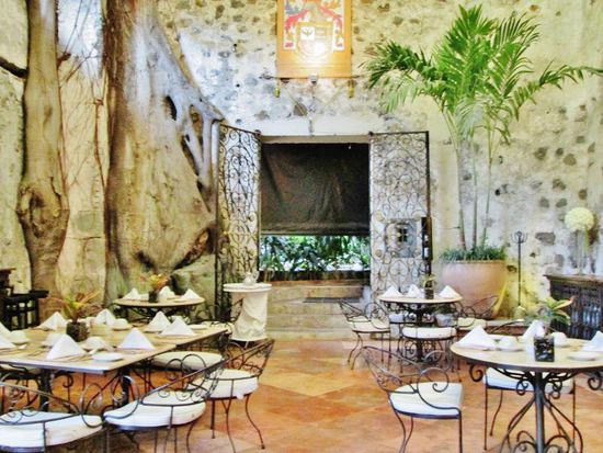 Auf der damaligen Hacienda stand eine Zuckerfabrik...; die heutigen Restaurationsbetriebe und das Hotel wurden hervorragend in die alten Gemäuer integriert...