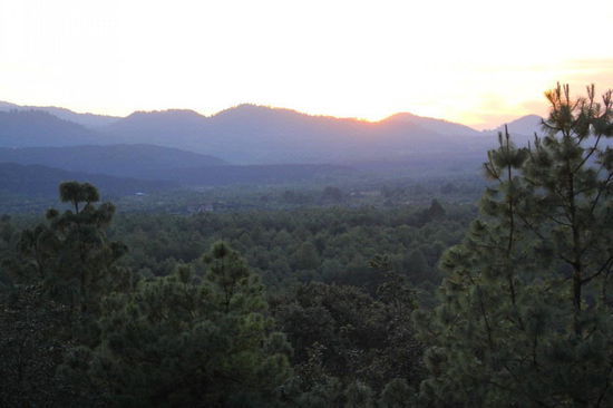 Im Vordergrund, dort wo es dampft - liegt der Vulkan Paricutin, der vor 70 Jahren ausgebrochen und neu entstanden ist...