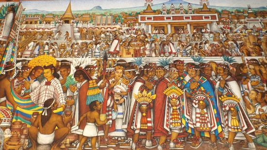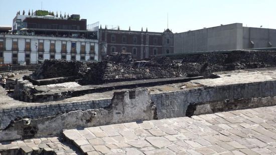 Nebenan die Ausgrabung des Templo Mayor, ein Azteken Tempel aus den Gründungstagen der Stadt.