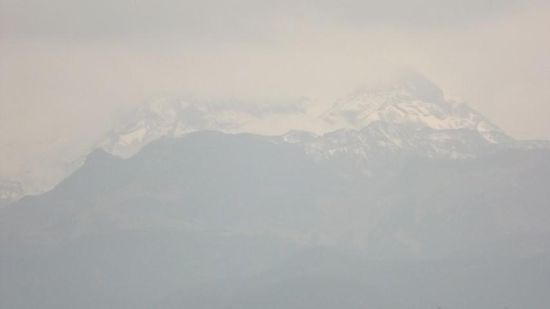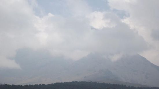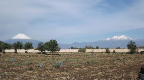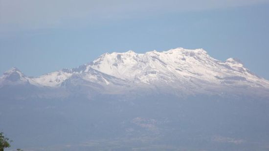 Von 'Ixta', der im Nationalpark liegt und zu dem auch Wanderwege führen bekommen wir erst mal überhaupt nichts zu sehen, als dann auch noch kalter Nieselregen einsetzt brechen wir den Besuch hier droben ab und fahren nördlich um die Vulkane herum Richtung Puebla. Irgendwann erhaschen wir auch noch einen kurzen, mehr schemenhaften Blick auf 'Ixta'.