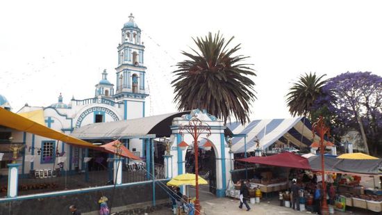 In Huejotzingo entdecken wir diese blaue, fast russisch anmutende Kirche am Wegesrand,