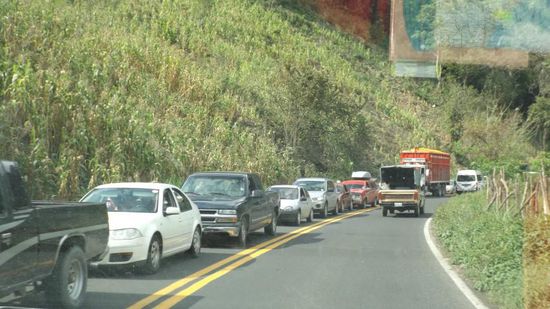 um Ostern mit einem traditionellen Lammbraten zu feiern. Auf unserem weiteren Weg Richtung Nord-Osten kommen wir zurück in den Staat Puebla und erleben auf dem Hwy 130 den typischen Osterurlauber-Rückreiseverkehr. Mitten in den Bergen über 40 km!!! Stau, stehender Verkehr und keine Umfahrungsmöglichkeit,