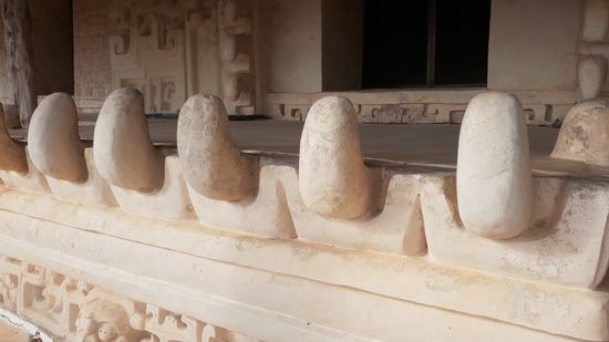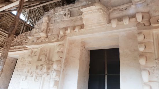 Um 14:00 Uhr haben wir uns ein Taxi bestellt, dass uns für 18 € ins 25km entfernt gelegene Ek Balam bringt. Unsere erste Mayaruine, sie ist zwar nur klein und man kann sie locker in einer Stunde besichtigen, aber laut Reiseführer besticht sie durch die tollen und sehr gut erhaltenen Reliefs und ist deswegen einen Nachmittag wert.