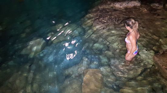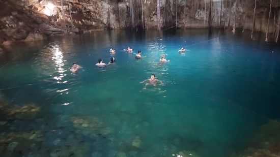 Die ersten Cenoten in nur 7 km Entfernung ist die X`Keken, sie ziert sogar den Einband des bekannten Reisefühers Lonley planet Mexiko und wir sind ebenso begeistert. Wir sind zum Glück früh und teilen uns das Becken mit nur einer Hand voll Menschen.