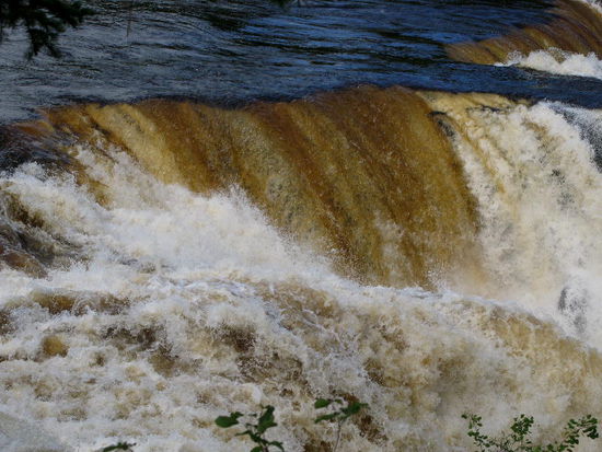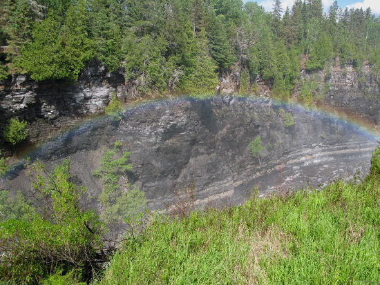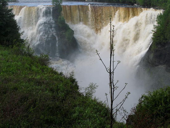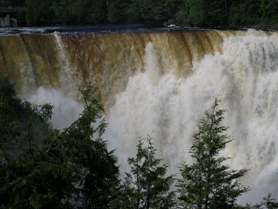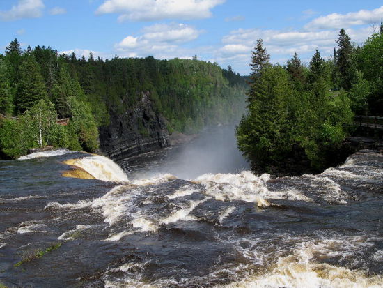 Unweit des Fort William donnert der Kakabeka Wasserfall in die Schlucht... Diese Wasserfälle und Stromschnellen machten das Leben der Voyageurs recht schwer, da sie die Waren aus den Schiffen hieven und die Wasserfälle zu Fuss umgehen mussten... d.h. Tragen des Kanus und der Pelze und Waren...