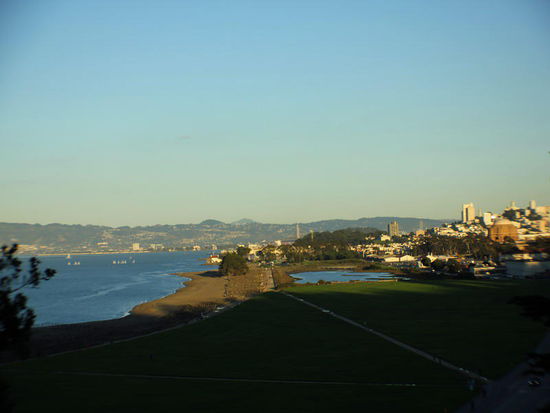 Und die Golden Gate Bridge im Glanz der Abendsonne...; wir haben Glück, sehr oft ist die Brücke in Nebel eingetaucht...