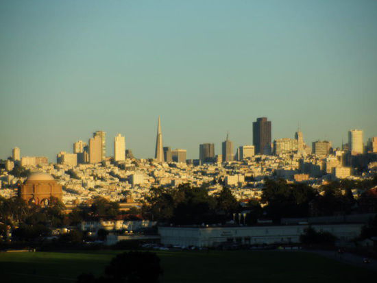 Der Wolkenkratzer Transamerica Pyramid im Financial-District ist ein typisches Wahrzeichen der Stadt mit Verkaufs- und Büroräumen. Das Gebäude wurde Ende der 1960er von William Pereira entworfen und 1972 fertiggestellt. Es ist 260 m hoch und hat 48 Stockwerke. Die Pyramide mit ihren prägnanten "Flügeln" sticht in der Skyline besonders hervor. Sie ist für Touristen nicht zugänglich.