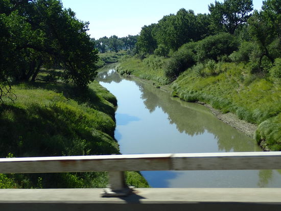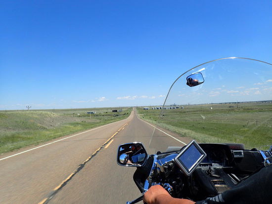 Bereits um 8.00 Uhr geht es heute los, da etwa 500km auf dem Highway 2 am Tagesplan stehen und für den Abend erneut ein Platz mit See angepeilt wird – da muss ja auch noch ein wenig Zeit zum Schwimmen bleiben. Endlose 500km – nur eben dahin. Dafür passieren wir so namhafte Orte wie Shelby (ist eine große Tuningfirma für Mustangs und Cobras), Zurich, Malta, Glasgow, Havre und Harlem. Neben der Straße begleitet uns die Bahntrasse. Da ich sonst nichts zu tun habe zähle ich die Waggons der Güterzüge – min. waren 101, max. 112 gezogen von 3 bis 4 Lokomotiven – da ist schon was unterwegs. Nach dem Mittagsstopp ist mir so langweilig, dass ich freiwillige darum bitte zu fahren – Arno bietet es mir immer mal an, aber das riesige Ding ist ja doch nicht ohne. Somit gehören die nächsten 100km mir am Lenker, und Arno muss auf den Sozius. Er sagt es zwar nicht, aber richtig wohl fühlt er sich dabei nicht – es würde wahrscheinlich vielen so gehen die es nicht gewohnt sind Beifahrer zu sein. Meine Fahrweise kann es aber nicht sein, denn ich habe keinen Fehler bemerkt *gg*. Endlich am Lewis & Clark State Forest mit einem Stausee der vom Missouri River gespeist wird angekommen schüttet es erst mal für 3 Minuten - eine dunkle Wolke. Sonst bewegen sich die Temperaturen zwischen 33 und 37° den ganzen Tag. Nach dem Zeltaufbau schmeißt sich Arno in die Fluten, ich ziehe heute die Dusche vor, da das Wasser am Ufer entlang etwas braun ist durch Wind und Wellen. Unser Standplatz liegt wie gestern direkt am Wasser, und wir genießen nach getaner Arbeit (Baden, Fotos, Schreiben, Kochen, Route planen usw.) den Blick auf den See bei einem Kartenspiel. Ich bin froh, dass Arno immer noch mit mir spielt, da er zu 70% der Verlierer ist .