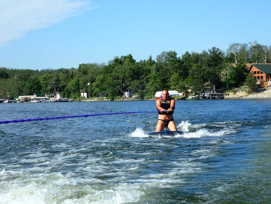 Für den heutigen Tag stehe nur mehr knapp 300km auf dem GPS, dann heißt es 5 Tage relaxen am Lake Metigoshe in der Nähe von Bottineau. Die Reisestrecke ist bis auf ein paar Ölförderpumpen unspektakulär, und gegen 13.00 Uhr auch schon geschafft. Hier treffen wir uns mit Chuck aus Modesto, da er von hier abstammt und seine Familie seit vielen Jahren ein Haus am See besitzt. Es ist traumhaft hier. Am Nachmittag versucht sich Arno im Wasserski fahren – er schlagt sich sehr tapfer, bald jedoch verlässt ihn die Kraft in den Füßen und er wechselt auf den Tube. Ich genieße währenddessen die Fahrt im Motorboot.