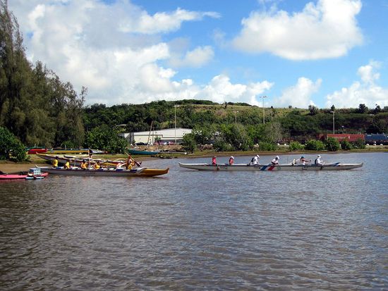 Am Morgen fahre ich zum Niumalu State Park an der Hulemalu Road bei Nawiliwili südlich von Lihue. Hier ist viel los, denn Einheimische bereiten eine Menge großer Auslegerboote vor.