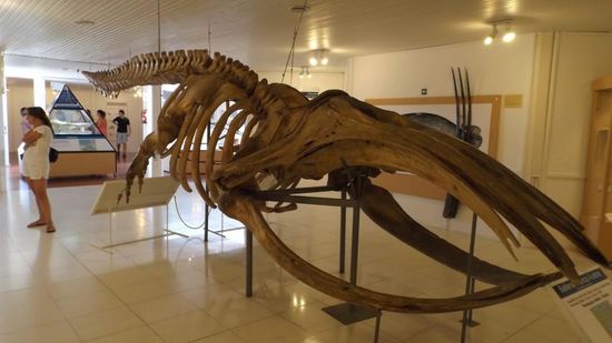 in die man sich zur schattigen, sandsturmfreien Mittagspause zurückziehen kann. Wir fahren weiter auf die Peninsula Valdes (ARS 180pP) schauen uns dort erst einmal im Infozentrum u.a. dieses Skelett eines Pottwales an,