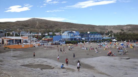 schauen in Puerto Piramide auch noch mal kurz den gutbesuchten Strand