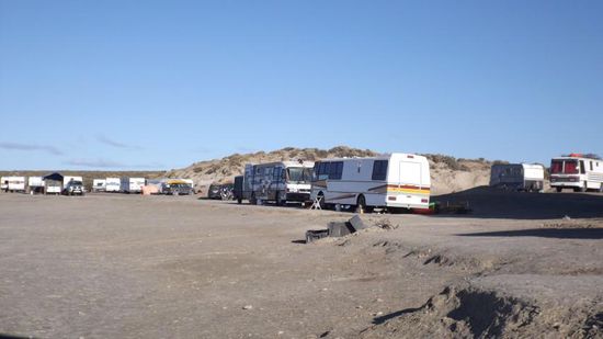 Am nächsten Morgen sind wir um 9h die letzten, die den CP verlassen, aber anscheinend seit Jahren die ersten, die in einer Konditorei ein Stück der berühmten Waliser schwarzen Torte kaufen wollen, denn der ganze Ort schläft noch, alles ist noch geschlossen. Fahren wir halt mit einem leicht knurrenden Magen zurück nach Trelew und von da gleich weiter nach Puerto Madryn, einem der argentinischen Badeorte. Am Strand doch etliche beim Sonnenbaden,