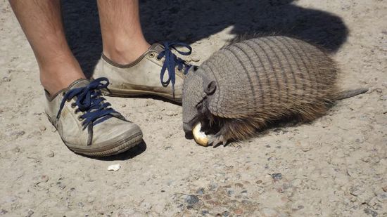 Auf dem Parkplatz am Nordende der Insel, Punta Norte erst dieses Armadillo,
