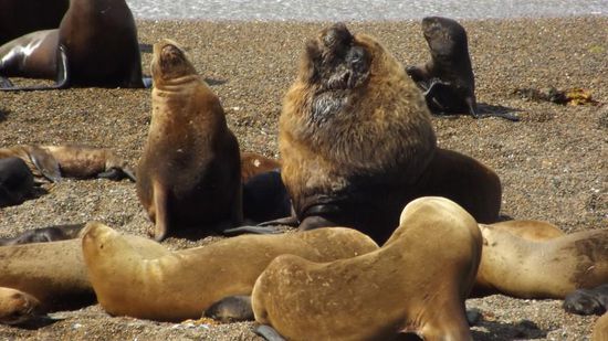 besuchen dann bei Punta Piramide diese Seelöwen Kolonie
