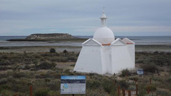 Am nächsten Morgen ein Blick zur Isla de los Pajaros im Hintergrund, die jedoch so weit weg ist, dass man ohne Fernglas kaum etwas erkennen kann, ein Blick auf San Jose im Vordergrund, Replica der ersten spanischen Kapelle hier in der Gegend, das Original wurde bei einem Aufstand der Indogenos 1810 zerstört