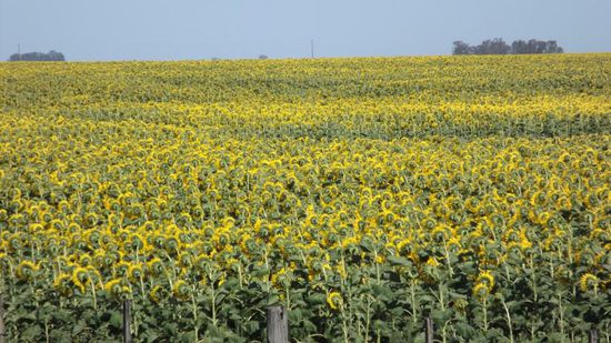 Am nächsten Morgen auf der Ruta 3 weiter Richtung Norden bis Bahia Blanca, einer Industrie-und Hafenstadt ohne besondere Sehenswürdigkeiten. Ab hier weiter Richtung Osten durch intensiv genutztes Farmland, wobei die Sonnenblumen hier der Sonne eigenartigerweise den Rücken zukehren