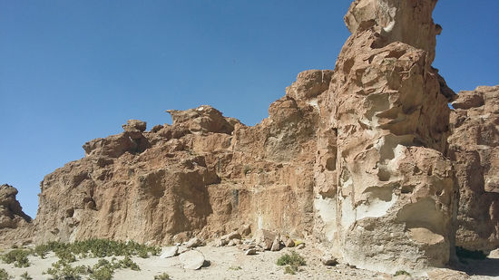 Später fahren wir durch eine Gegend mit vielen interessant geformten Felsformationen vorbei. Armando versucht, an einer etwas windgeschützten Stelle zu halten, damit wir raus können. Ich nehme meine Kamera gar nicht erst mit, um sie nicht dem Sand in der Luft auszusetzen und mache nur mit dem Handy Fotos.