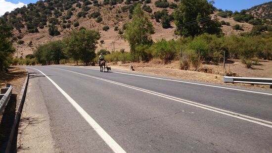 Wieder habe ich Glück. Manuel fährt montags nach Santiago und kann mich bis ins Mauletal mitnehmen. Das Mauletal ist eine der Weinbauregionen in Chile. Der Weinbau setzt sich Richtung Norden bis in die Region von Santiago fort. Schnell wird das Grün des pazifischen Küstenstreifen durch das Gelb des Spätsommers ersetzt. Auf der Ruta 5 sehe ich einen Reiseradler. Ich beneide ihn nicht. Es gibt ziemlich viel Verkehr. Kurz nachdem wir an einer Raststätte anhalten, kommt auch der Reiseradler. Ich spreche ihn auf Spanisch an. Das funktioniert nicht. Aber Deutsch. Er kommt aus Süddeutschland, ist Anfang November in Buenos Aires angekommen und von dort aus nach Ushuaia und dann die Carretera Austral zurück. Das ist enorm!! Auf der Carretera Austral wäre es hart gewesen. Dort hätte er auf den Caminos ripios 'nur' 50 km am Tag geschafft. Auf der Panamericana schafft er 130 km am Tag. Er freut sich, dass er gut voran kommt.