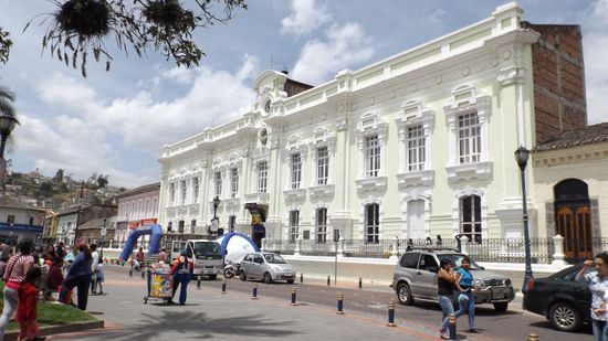 bevor wir nach Otavalo weiterfahren, wo wir auf dem CP Rincon del Viajero die nächsten Nächte verbringen werden. Samstagmorgens gehen wir zu Fuss in die Innenstadt, vor dem Rathaus ist Partystimmung