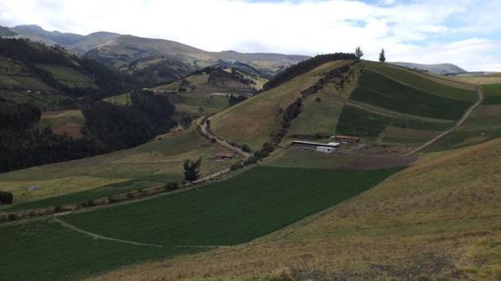 Heute wollten wir eigentlich auf dem Vulkan Cayambe zum Wandern, wir fahren auf einer Pflasterstrasse meist im Schritttempo hoch bis zum Eingang in den NP auf über 3500m, aber wir sind immer noch 10km vom Refugio entfernt, Wolken und Nieselregen verschlechtern die Sicht und der Fahrweg ist eigentlich nur noch für Allradfahrzeuge geeignet. Wir brechen die Aktion ab und drehen um. Beim Runterweg Ausblicke auf die Viehfarmen hier droben,