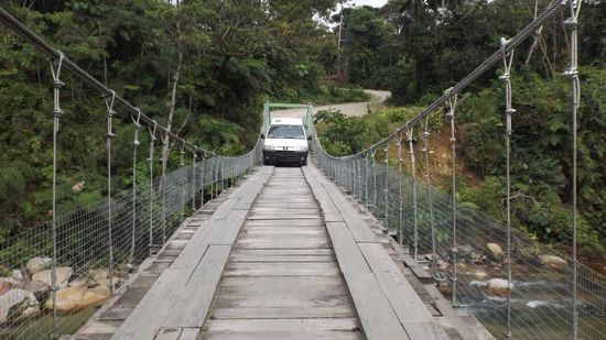 Auf der selben Holperstrecke geht es zurück, nochmals über diese schmale Hängebrücke