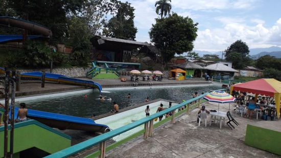 bis wir dann die Cuevas de Jumandy erreichen. Hier müssen wir erst einmal $2 pP für Parkplatz und Wasserpark(nicht-)benutzung bezahlen,
