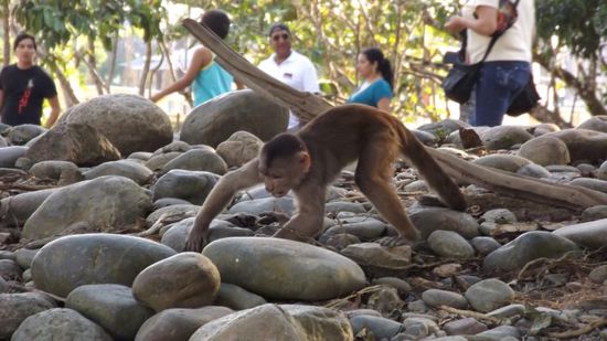 Fahren wir eben unverrichteter Dinge weiter nach Misahualli, suchen dort erst einmal vergeblich den "Camping Beach", den es, wie wir nach längerem Suchen und Herumfragen erfahren, leider nicht mehr gibt. Hier tummeln sich der mittlerweile Strandaffen