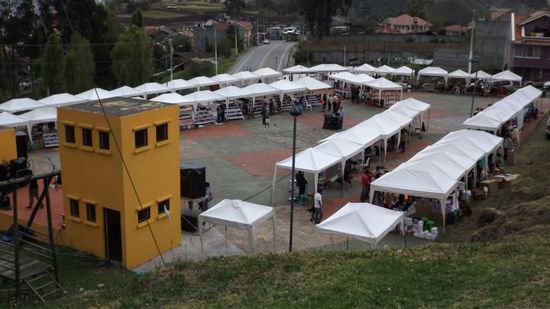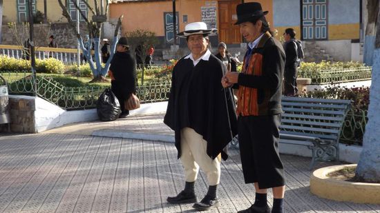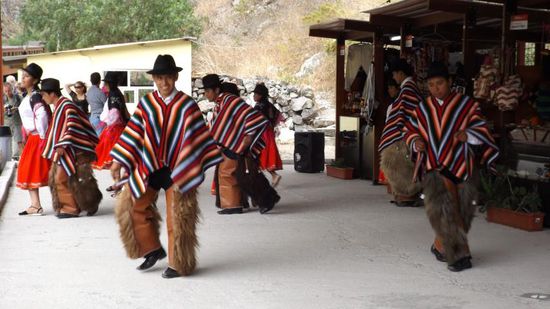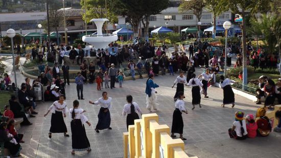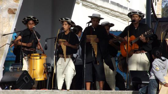 Nun nochmals auf 2600m hinab und schon haben wir Sacaguro, den letzten 'Markt' für heute erreicht, nur dass hier heute kein Markt ist, sondern eine Feria Touristica unter dem Motto: Arte - Cultura y Tradition, für die Musikgruppen ist eine Bühne aufgebaut,