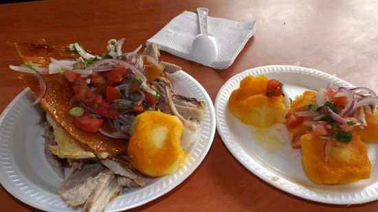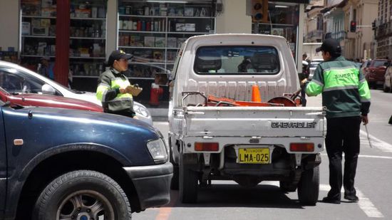 bevor wir zurück nach Loja fahren. Wir kaufen für $1,5 einer Polizistin!! eine Park-Streifenkarte ab, 12 Streifen a 30min, gültig für 90 Tage, markieren 4 Streifen = 2 Stunden und gehen zum Essen in den Markt,