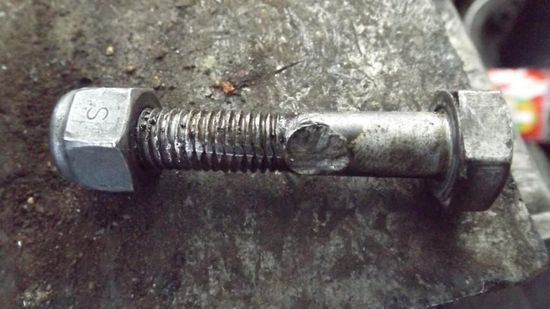 und der untere Bolzen der linken Vorderradaufhängung war weit weg von seinem angestammten Ort.