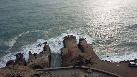 Neben Sandstränden gibt es hier auch den Hügel, auf dem sich der Cristo Blanco befindet, sowie das Kreuz, das nachts beleuchtet und von anderen Stadtteilen wie Miraflores zu sehen ist. Einen echten Fussweg gibt es nicht hoch, doch es führt eine Straße hoch, an der man entlang gehen kann. Oben, hinter dem Kreuz, kann man auf die andere Seite des Hügels schauen, wo sich eine Bucht befindet. Direkt unter dem Hügel gibt es eine felsige Küste, an der einige Passanten spazieren gehen. Die Sonne kämpft gegen den Dunst in der Luft, so dass einige Sonnenstrahlen die Küste erreichen. Vom Kreuz aus führt eine Straße an einem kleinen Planetarium vorbei, bis zum Cristo Blanco. Hier befinden sich mehrere Aussichtspunkte, von denen aus man auf einen großen Teil von Lima sowie auf das Meer schauen kann. Weiter weg sieht man die Hochhäuser von Miraflores.