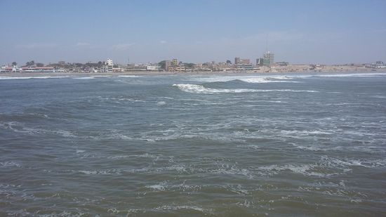 An einem Tag fahre ich zu dem benachbarten Städtchen Pimentel, das sich direkt am Meer befindet. Von einer Art Terminal fahren Minivans hin, sobald sie voll sind. Pimentel ist ein ruhiger, verschlafener, kleiner Ort, mit einem laaaangen Strand. Die Sonne scheint wunderbar doch es weht ein starker, frischer Wind und ich bin froh, auch meine Weste und mein Fleeceshirt mitgenommen zu haben. Das Meer ist sehr unruhig, eine Welle jagt die nächste, ununterbrochen bewegen sie sich auf den Strand zu, bis sie am Ende schließlich ihre Kraft verlieren.